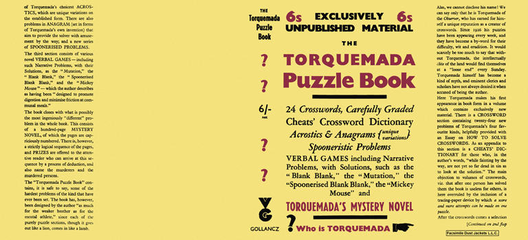 Em 1934, a editora Gollancz publicou o livro de quebra-cabeça escrito por um autor conhecido pelo pseudônimo Torquemada (Edward Powys Mathers). Além de algumas palavras cruzadas extremamente difíceis, o livro continha nas últimas 100 páginas este romance-quebra-cabeça intitulado “Mandíbula de Caim”.